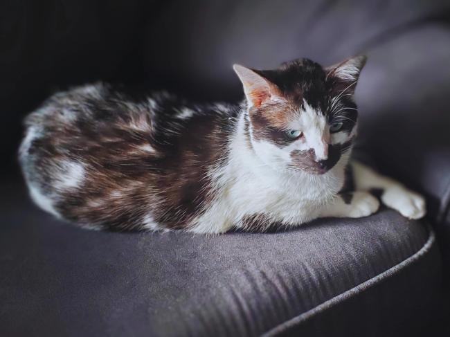 “Bandit (my big boy) continues to thrive in our house as he has quickly become my other ‘son.’ He finally slept in his cat bed, but it had to be on a bed first! He still prefers to sleep with my twins in their room, but his favorite napping spot is next to me on our ottoman chair. He has found ways to communicate with us: tapping the blinds to let us know he wants to look out the window, meowing very loudly when he is upset or hungry, and purring like a race car when he's happy. My oldest says he runs to sit by the garage door when he hears my car pull in, and I am the only one who can carry him around for extended periods. The kids are super helpful with feeding, but litter box duty is still all me. He is quite fond of watching the starlings in the backyard and watching my twins get on and off the bus from the front window. Thank you for rescuing Bandit! He is such a perfect addition to our family, and I can't imagine my life without him!”