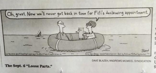 Recently, a letter to the editor in the Washington Post (about a cartoon that showed a woman talking about being late for her appointment to have her cat declawed) reminded the Whiskers, Paws and Love team that declawing surgery, which began in 1952, is still a common practice in veterinary medicine.
